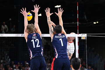 Epreuve de volleyball demi finale entre les Etats-Unis et la Pologne lors des Jeux Olympiques de Paris 2024 (JO) à l'Arena Paris Sud