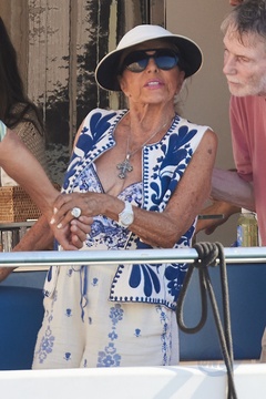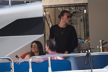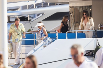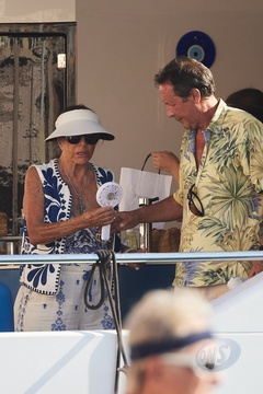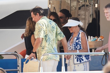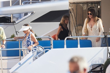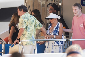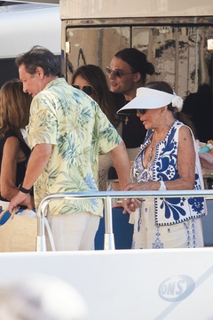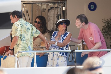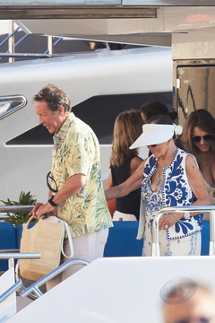 Elizabeth Hurley i jej syn Damian, Joan Collins i jej mąż Percy Gibson spędzają dzień na jachcie u wybrzeży Saint-Tropez. 25