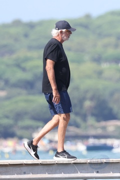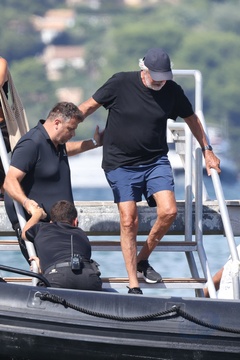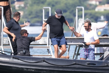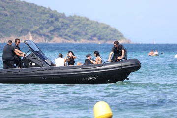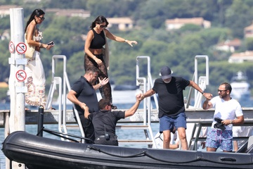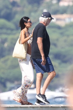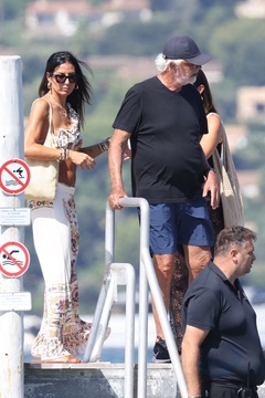 Flavio Briatore et Elisabetta Gregoraci embarquent sur une annexe au Club 55 à Saint-Tropez