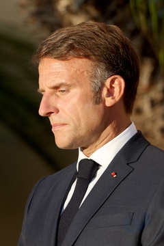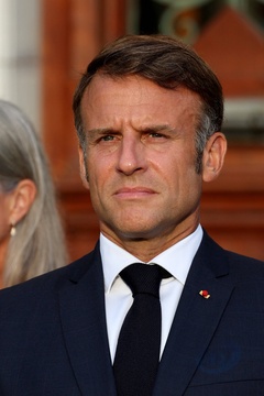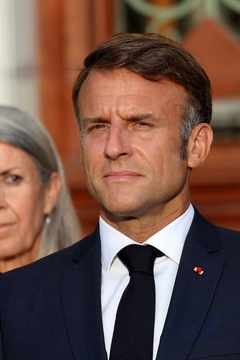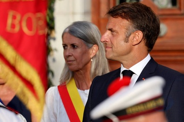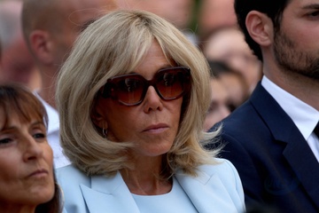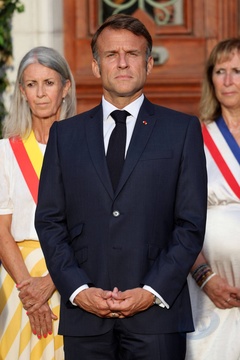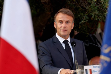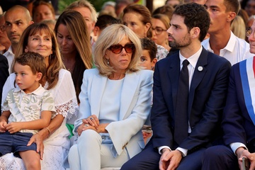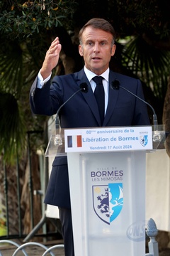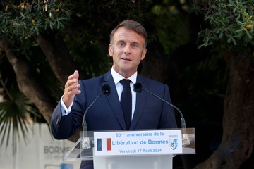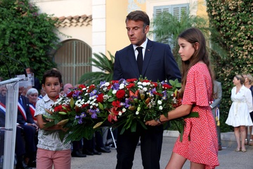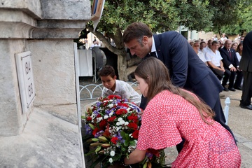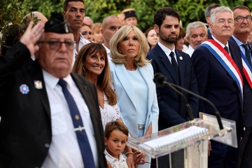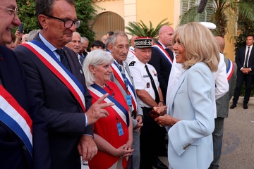 Prezydent Emmanuel Macron i jego żona Brigitte Macron biorą udział w uroczystościach z okazji 80. rocznicy wyzwolenia miasta Bormes-les-Mimosas 26