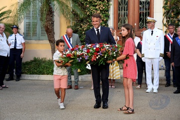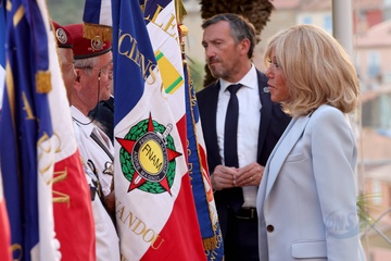 Le président Emmanuel Macron et sa femme Brigitte Macron participent à la cérémonie du 80ème anniversaire de la libération de la ville de Bormes-les-Mimosas
