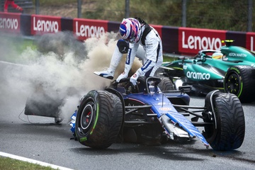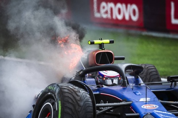 Samochód Logana Sargeanta (USA) brutalnie opuścił tor i zapalił się podczas wolnych treningów przed Grand Prix Holandii F1 w Zandvoort 5