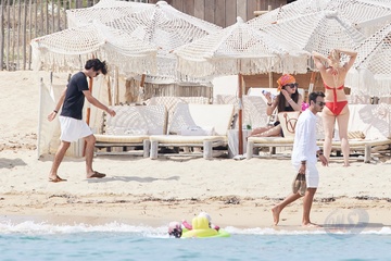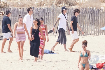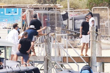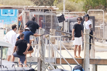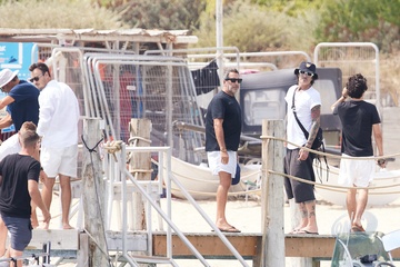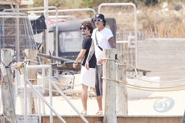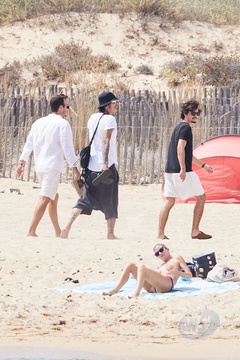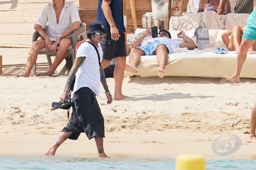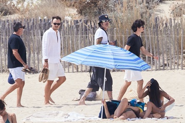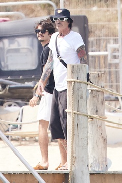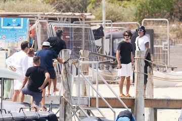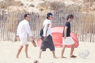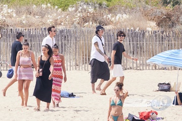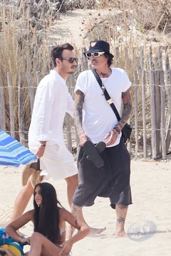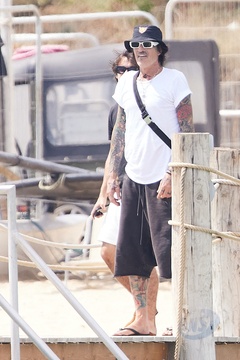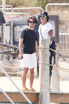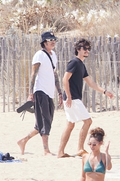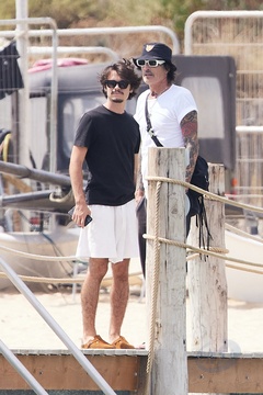 Tommy Lee i jego synowie Brandon i Dylan przybywają na plażę w Saint-Tropez, aby udać się na lunch