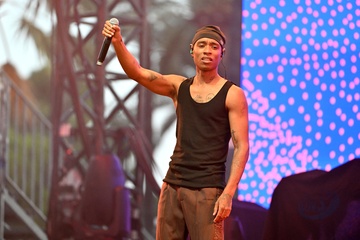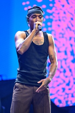 Irlandzki raper Rejjie Snow na koncercie podczas 4. wieczoru Nice Jazz Fest na scenie Massena w Nicei