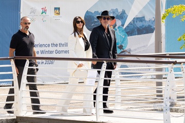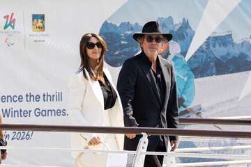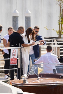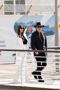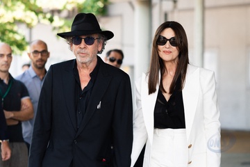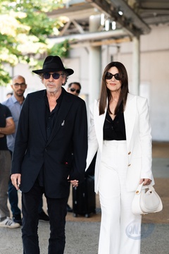 Monica Bellucci i jej towarzysz Tim Burton przybywają do Lido podczas 81. Międzynarodowego Festiwalu Filmowego w Wenecji (Mostra)