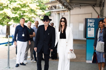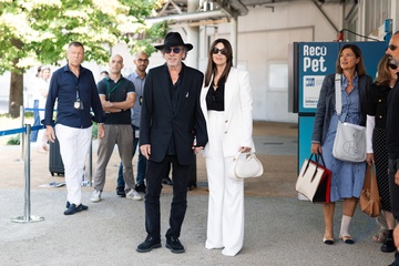 Monica Bellucci et son compagnon Tim Burton arrivent au Lido lors du 81ème Festival International du Film de Venise (Mostra)