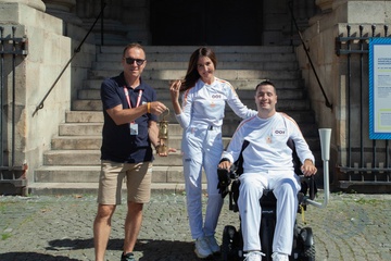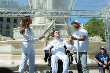 Elsa Zylberstein niesie płomień Igrzysk Paraolimpijskich w Paryżu, na kilka godzin przed ceremonią otwarcia