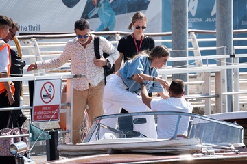 Antonio Banderas i jego partnerka Nicole Kimpel przyjeżdżają do Wenecji podczas 81. Międzynarodowego Festiwalu Filmowego w Wenecji (Mostra