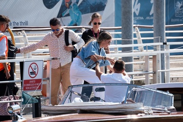 Antonio Banderas et sa compagne Nicole Kimpel arrivent à Venise, lors du 81ème Festival International du Film de Venise (Mostra)