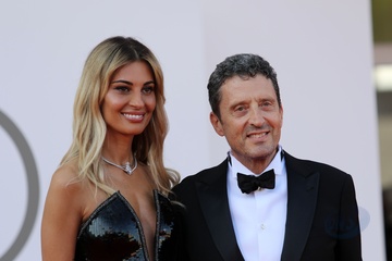 Italy, Lido di Venezia, August 28, 2024: Sveva Alviti and Pietrangelo Buttafuoco attend a red carpet for the movie 'Beetlejuice Beetlejuice' during the opening night of 81st Venice International Film Festival