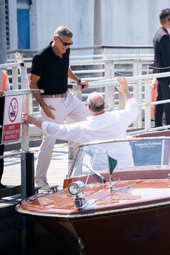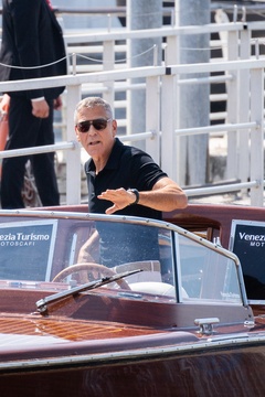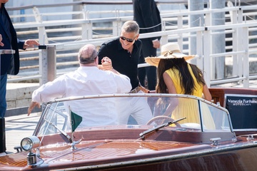 George Clooney i jego żona Amal Clooney przybywają do Lido podczas 81. Międzynarodowego Festiwalu Filmowego w Wenecji (Mostra)