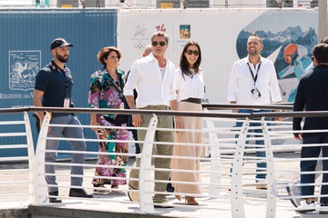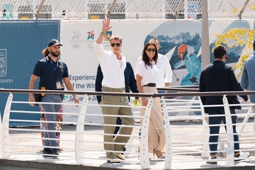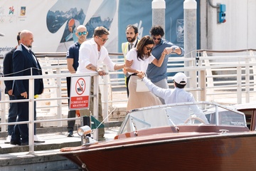 Brad Pitt i jego partnerka Ines de Ramon przybywają na 81. Międzynarodowy Festiwal Filmowy w Wenecji, La Mostra