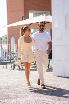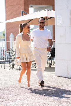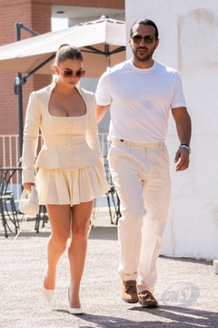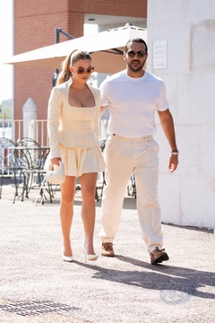 Sydney Sweeney i jej narzeczony Jonathan Davino po przybyciu na lotnisko w Wenecji