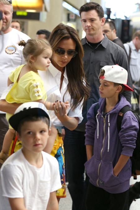 Victoria Beckham z dziecmi na lotnisku Lax, Los Angeles