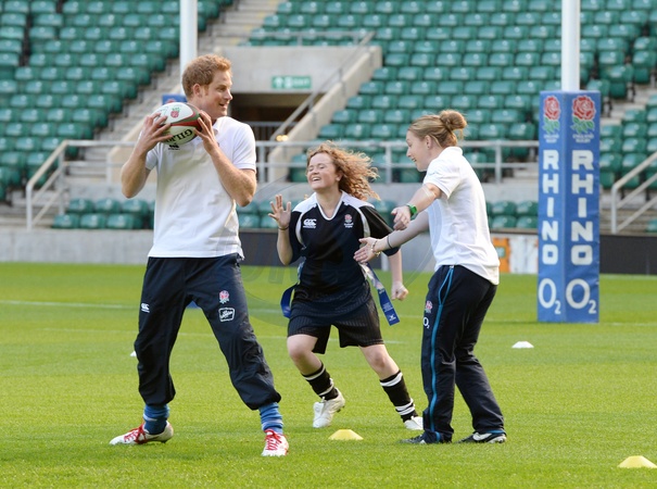 Ksiaze Harry trenuje rugby z Jasonem Robinsonem, Londyn