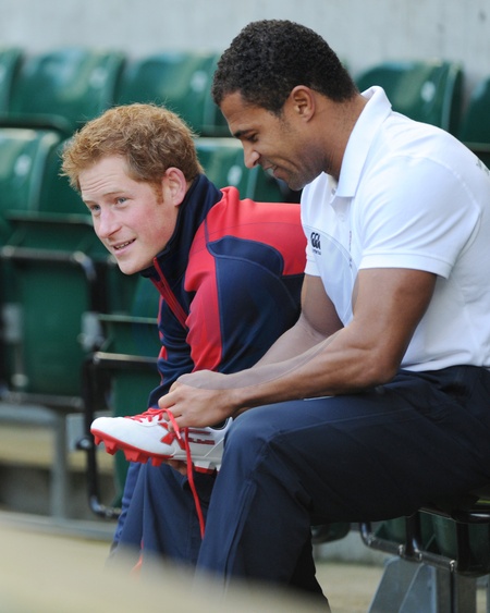 Ksiaze Harry trenuje rugby z Jasonem Robinsonem, Londyn