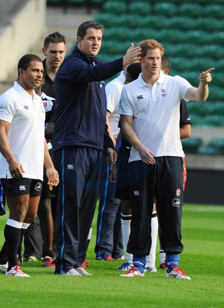Ksiaze Harry trenuje rugby z Jasonem Robinsonem, Londyn