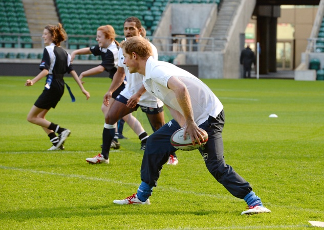 Ksiaze Harry trenuje rugby z Jasonem Robinsonem, Londyn