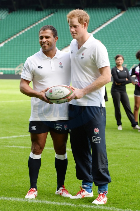 Ksiaze Harry trenuje rugby z Jasonem Robinsonem, Londyn