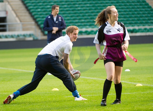 Ksiaze Harry trenuje rugby z Jasonem Robinsonem, Londyn