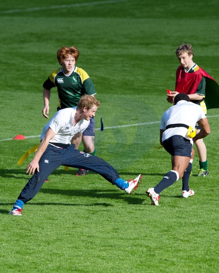 Ksiaze Harry trenuje rugby z Jasonem Robinsonem, Londyn