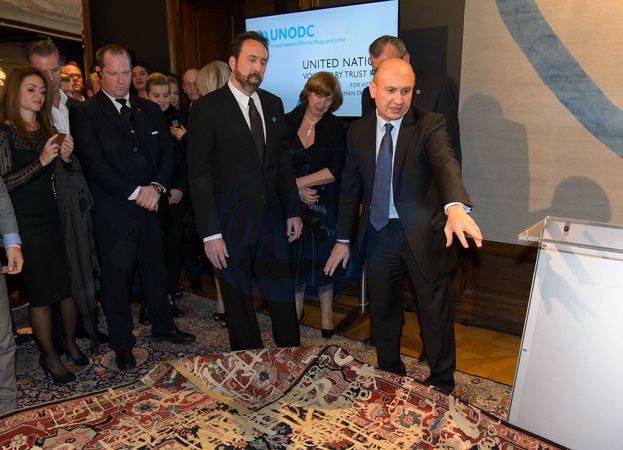 Nicolas Cage na gali Unodc Blue Heart Charity w Wiedniu, Austria
