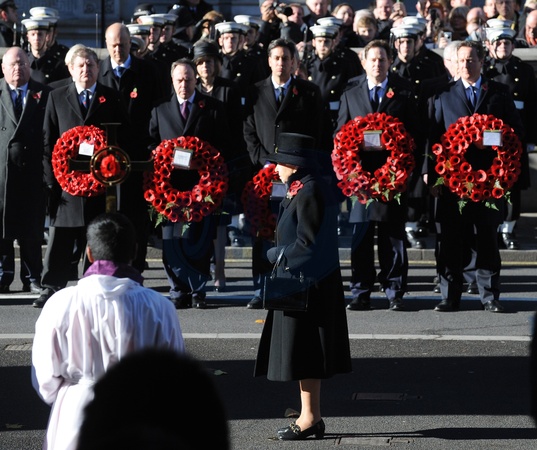 Politycy i rodzina krolewska na obchodach Remembrance Sunday, Cenotaph on Whitehall in London