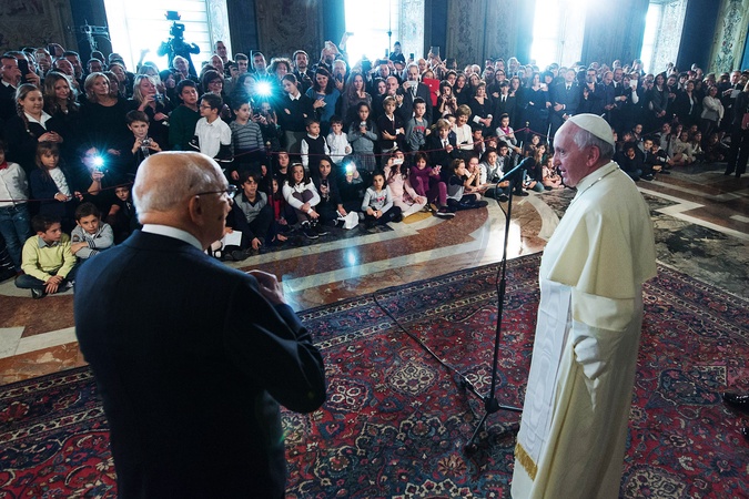 Papiez spotkal sie z prezydentem Wloch w Palacu Kwirynalskim, Rzym