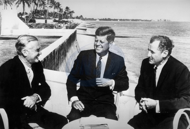 Missouri Senator Stuart Symington (left), and Florida Senator George Smathers (right), pose with President-Elect John F Kennedy, 1.jpg