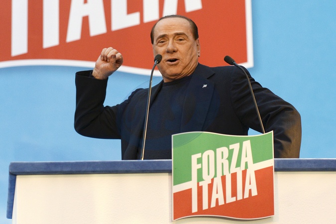 Silvio Berlusconi przemawia przed swoja rezydencja, Palazzo Grazioli w Rzymie