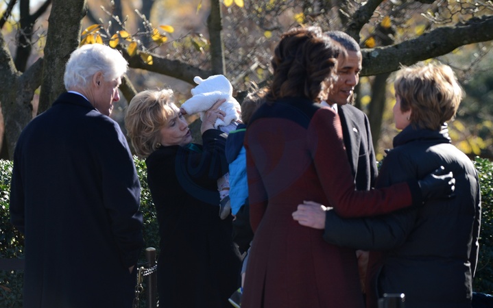 Former United States President Bill Clinton, First Lady Michelle Obama and U.S. President Barack Obama 05.jpg