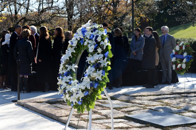 Para prezydencka sklada wieniec pod pomnikiem Johna F. Kennedy'ego, Virginia
