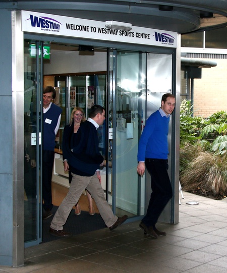 Ksiaze William wychodzi z Centrum Sportu Westway, Londyn