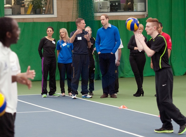 Ksiaze William gra w siatkowke w Centrum Sportu Westway, Londyn
