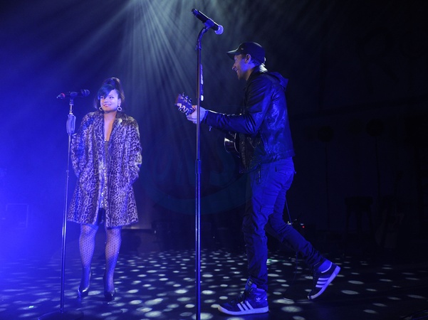 Lily Allen na scenie z Chrisem Martinem i Robbie Williamsem