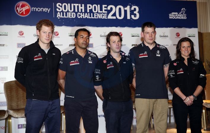 Ksiaze Harry na komferencji z uczestnikami Walking With The Wounded Virgin Money South Pole Allied