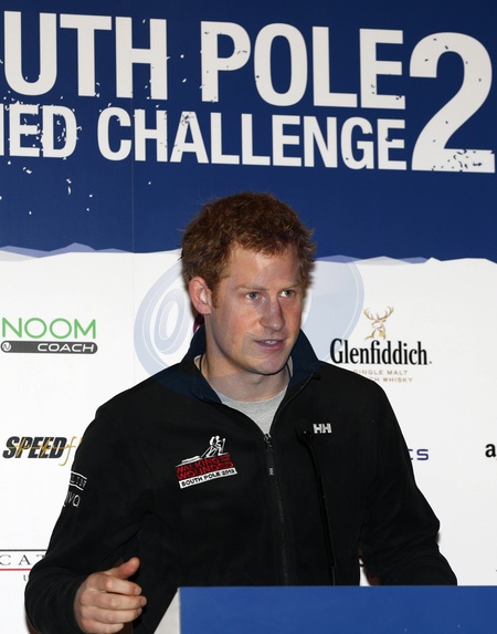 Ksiaze Harry na komferencji z uczestnikami Walking With The Wounded Virgin Money South Pole Allied