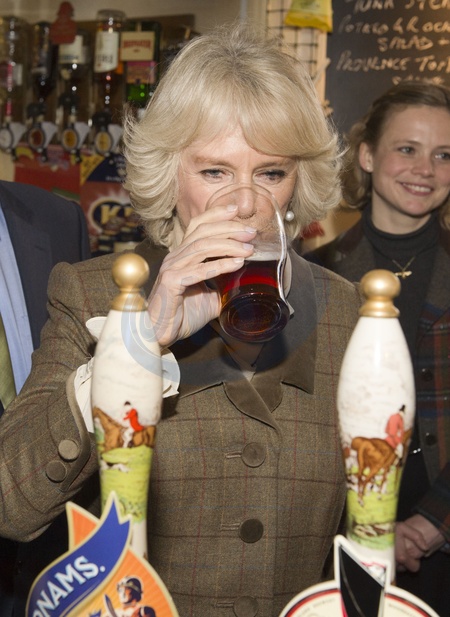 Ksiaze Karol i Ksiezna Camilla pija piwo