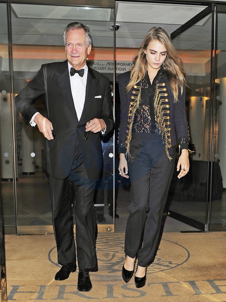 Cara Delevingne z ojcem wracaja z aukcji, Londyn