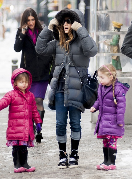 Sarah Jessica Parker z corkami w puchowych kurtkach