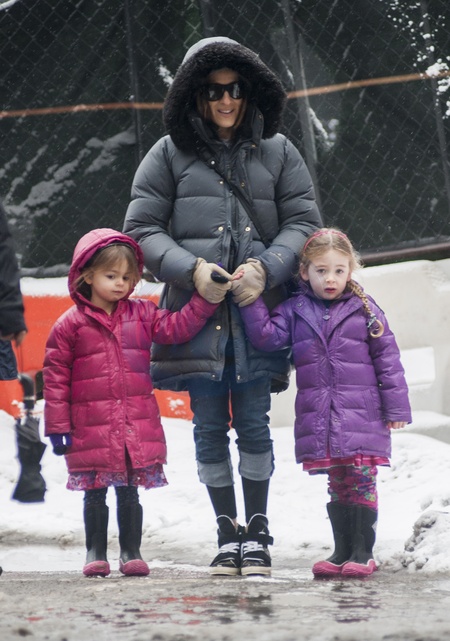 Sarah Jessica Parker z corkami w puchowych kurtkach