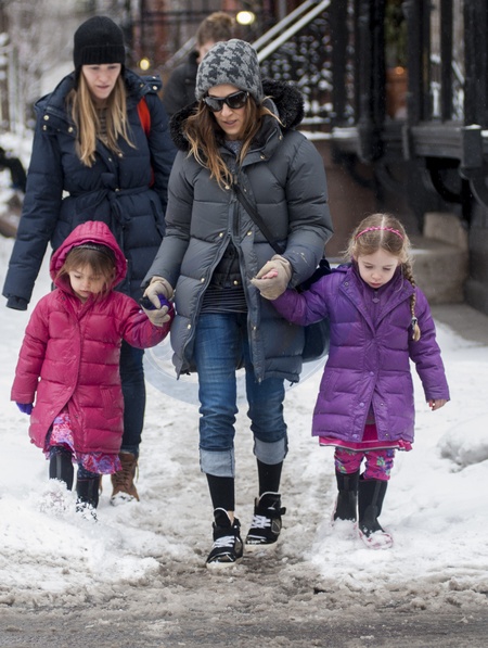 Sarah Jessica Parker z corkami w puchowych kurtkach