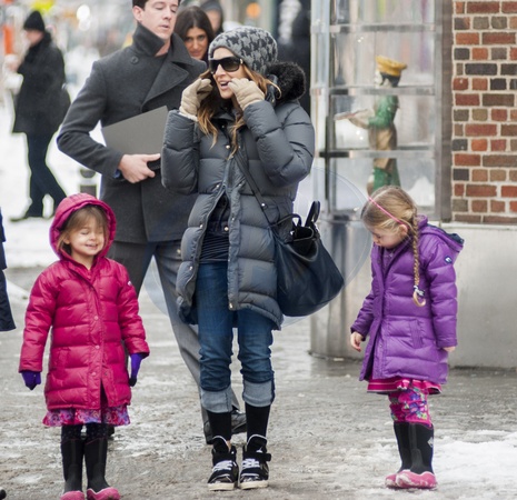 Sarah Jessica Parker z corkami w puchowych kurtkach
