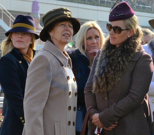 Ksiezna Anne i Zara Phillips podczas Ladies Day of the Cheltenham Gold Cup Festival 2014