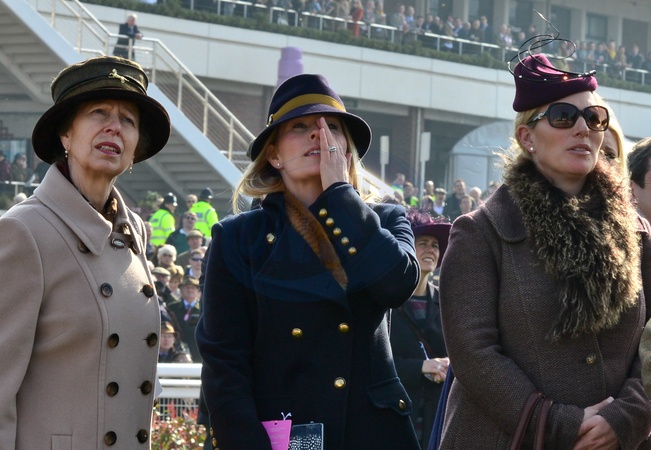 Ksiezna Anne i Zara Phillips podczas Ladies Day of the Cheltenham Gold Cup Festival 2014