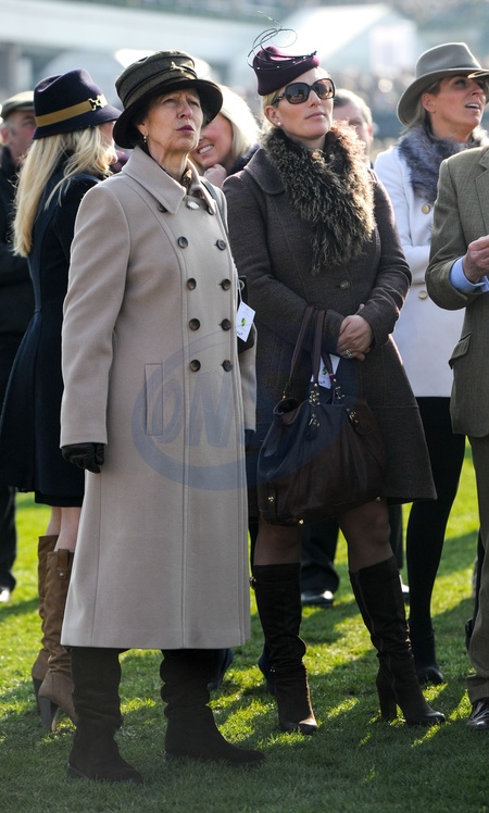 Ksiezna Anne i Zara Phillips podczas Ladies Day of the Cheltenham Gold Cup Festival 2014