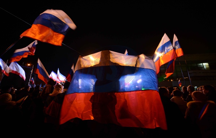 Referendum na Krymie - Rosyjskie flagi w Symferopolu