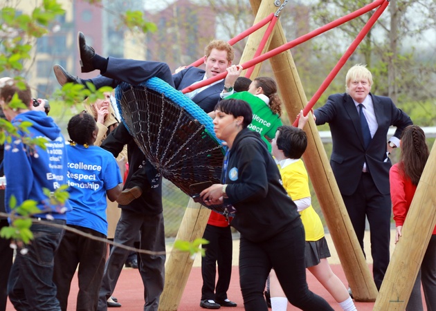 Ksiaze Harry i Boris Johnson spotkali sie z dziecmi w Parku Olimpijskim Queen Elizabeth