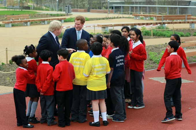 Ksiaze Harry i Boris Johnson spotkali sie z dziecmi w Parku Olimpijskim Queen Elizabeth