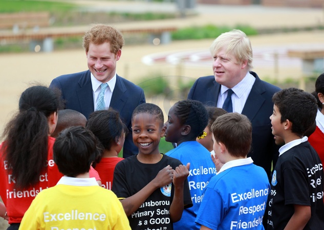 Ksiaze Harry i Boris Johnson spotkali sie z dziecmi w Parku Olimpijskim Queen Elizabeth